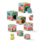 Get stacking! With this stacking blocks tower from SES Creative, children can entertain themselves for hours. Seven open stacking blocks with super fun illustrations are home to the three wooden animal figures that come with this set! Stack the blocks in different ways and let the animals walk through the holes in the tower. Each side of the tower forms a new stack or row with a different theme. Make a train, tree, street, tower and more! The blocks fall easily into eachother, which makes them super easy to store and save space.