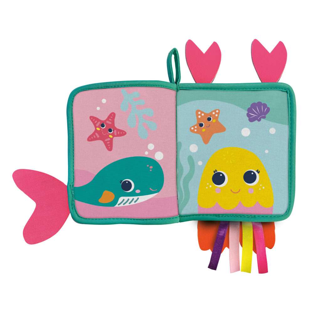 Este libro blandito incluye imágenes divertidas de animales y colas. Los más pequeños no solo se divertirán mirando el libro, ¡también se lo pueden llevar a la bañera! Está hecho de neopreno superresistente, que es el tejido con el que se fabrican los trajes de buceo. ¡Así que puede meterse en el agua para añadir un extra de diversión a la hora del baño!