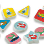 • Piezas de plástico de gran tamaño de 4 formas diferentes con figuras para memorizar