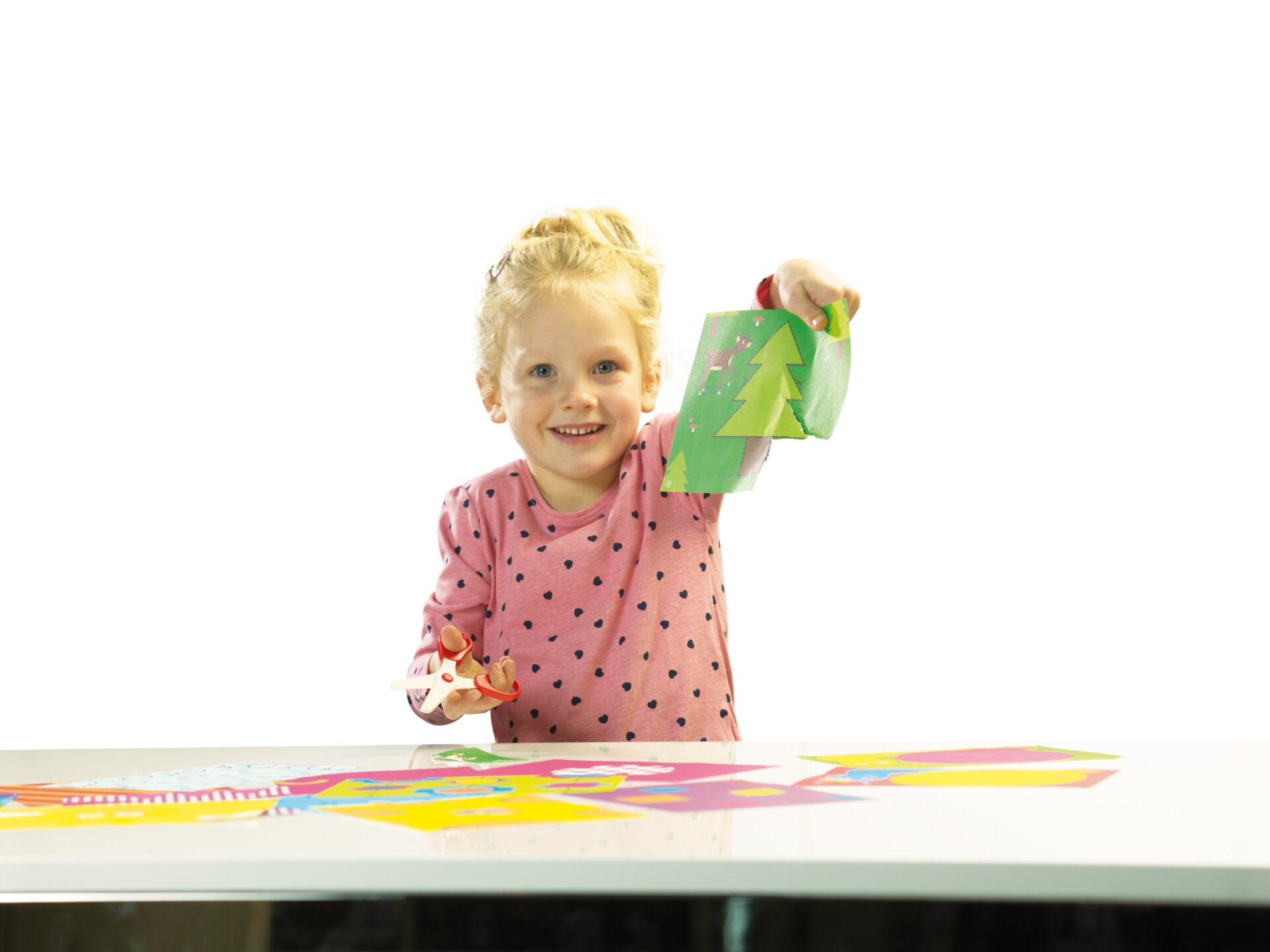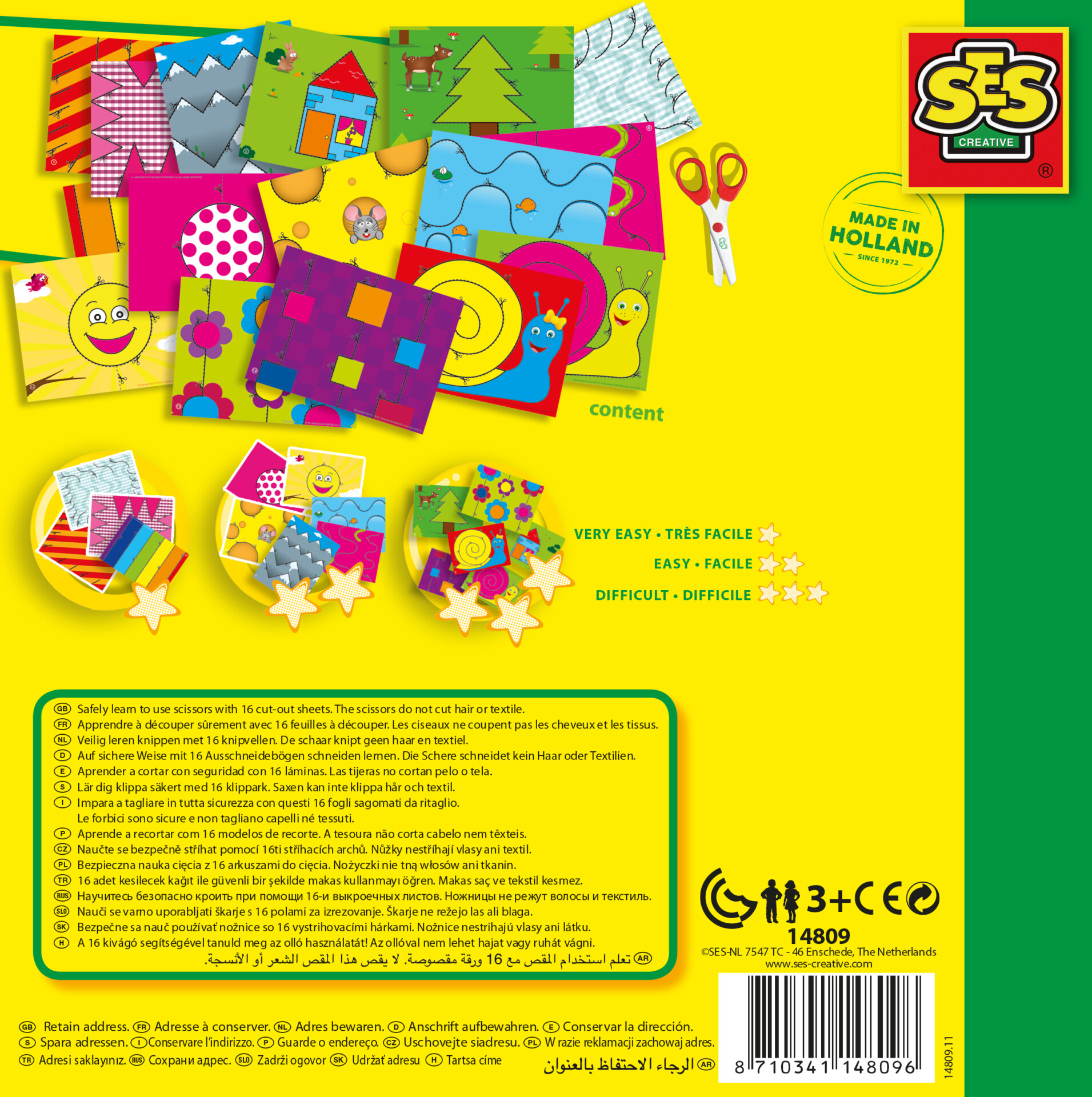 Een schaar gebruiken moet iedereen leren. Met deze set leer je dit op een veilige manier. Dit schaartje kan namelijk alleen papier knippen. Kleren en haren lopen dus geen enkel risico. De voorbedrukte knipvellen bevatten knipopdrachtjes variërend in moeilijkheidsgraad.