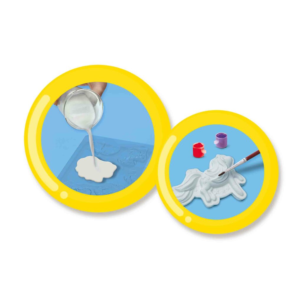 Houd jij ook zo van eenhoorns? Met deze set van SES Creative maak je eenvoudig allerlei leuke eenhoornbeeldjes van gips. Giet het gips in de mal en laat het uitharden. Pak dan de bijgeleverde verf erbij en schilder de eenhoorns in je favoriete kleuren. Leuk om te doen en een super resultaat!